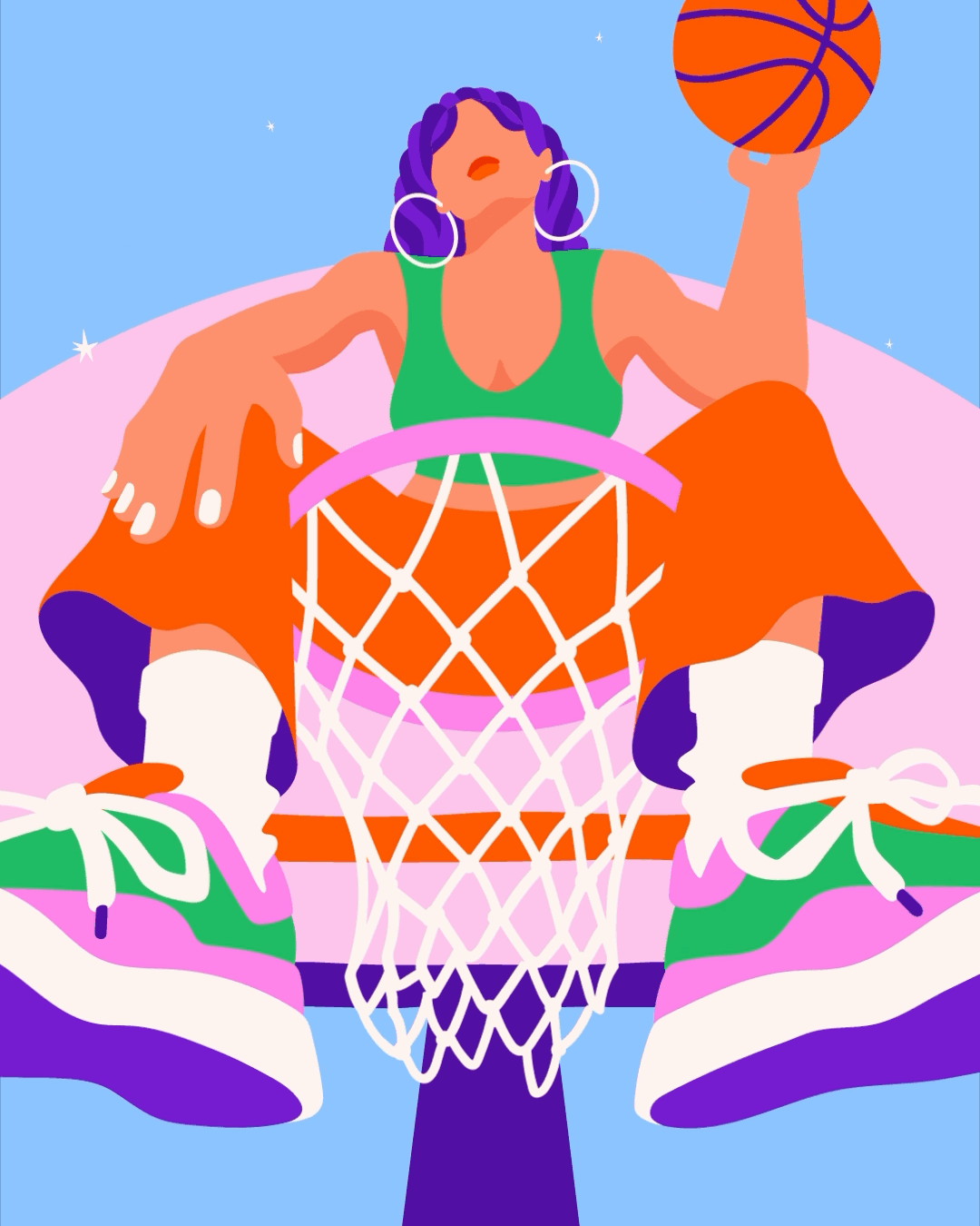 A project that always comes to mind when I think of favourite collaborations is the one I had the opportunity to work on during the 2020 US election. Lyft, the US transportation service company, commissioned me to illustrate several artworks featuring diverse people using different modes of transportation, like bikes, scooters, and cars, to get to the polls. I got to draw what I love most: empowered, dynamic characters, combined with lettering and a vibrant colour palette. The highlight was that these illustrations were part of a digital campaign that was even displayed in New York’s Times Square—definitely a career milestone!